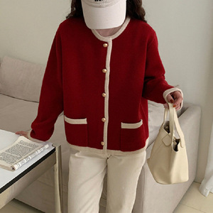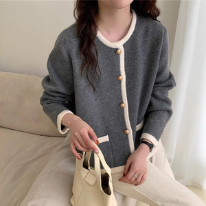 拼色圆领小香风针织开衫女秋冬新款韩版高级感休闲单排扣毛衣外套