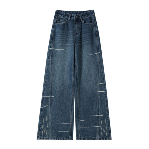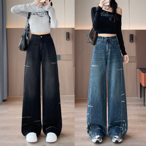 小破洞阔腿牛仔裤女长裤春秋季新款宽松显瘦垂感高腰直筒拖地裤子