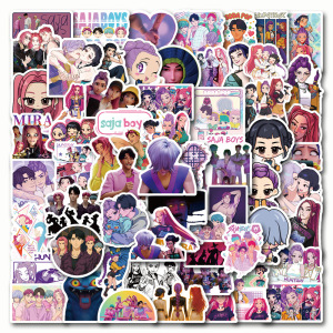 50张KPOP猎魔女团贴纸黑夜霓虹灯DIY涂鸦个性跨境创意汽车贴贴画