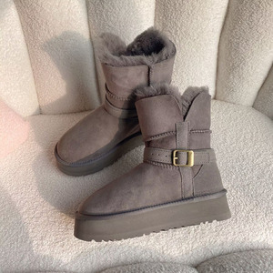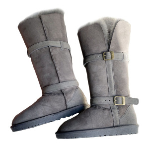 翻口高筒雪地靴女冬季新款皮扣骑士加绒加厚棉鞋羊皮毛一体长筒靴