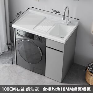奶灰色-100右盆双下水【加厚蜂窝铝整板】