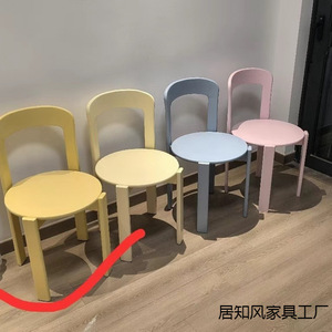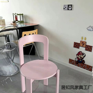 北欧简约实木中古餐椅家用咖啡客厅靠背彩色rey餐椅奶茶店椅子