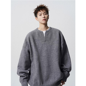 韩版小V领针织衫男女冬季高街慵懒风情侣毛衣复古潮牌青少年线衣