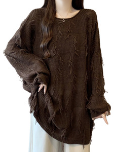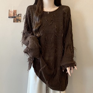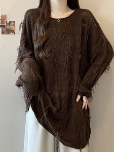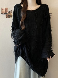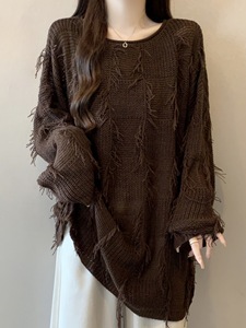 2025秋季新款女装韩系胖MM宽松显瘦软糯流苏毛衣长袖上衣女A7504