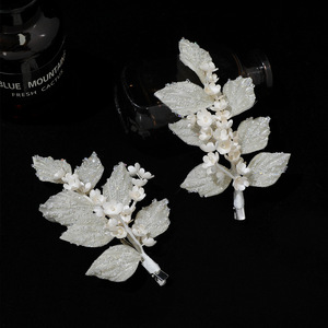 新娘头饰白色铃兰花叶片敬酒服侧边夹结婚订婚旗袍配饰高级感发饰