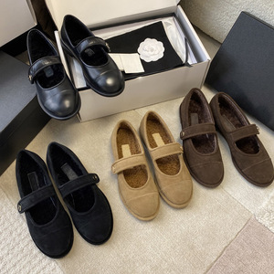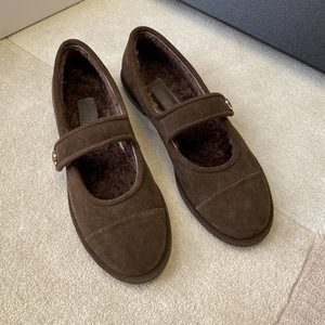 名媛公主小香风玛丽珍鞋 秋冬新款羊毛鞋保暖防寒平底浅口芭蕾鞋