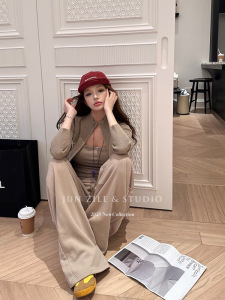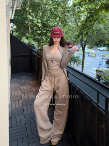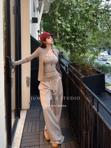 女装秋套装针织开衫毛衣外套吊带背心内搭辣妹低腰直筒阔腿休闲裤