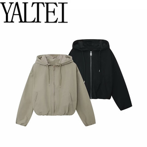 YALTEI跨境速卖通ins欧美外贸 女装 法式风下摆收紧连帽夹克外套