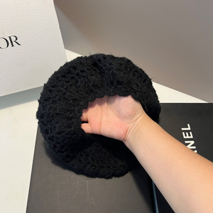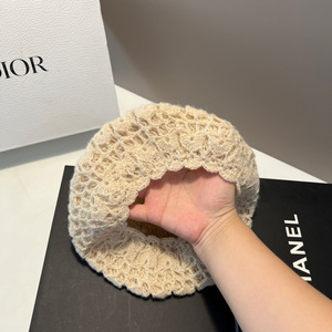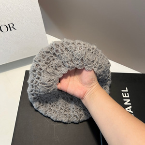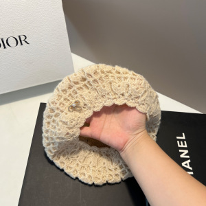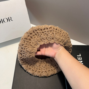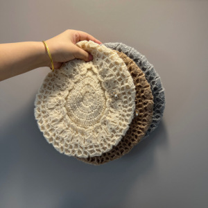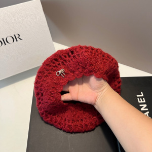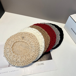 水钻蝴蝶结双层贝雷帽子女秋冬双层保暖镂空钩花毛线帽针织画家帽