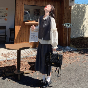 灰色新中式蝴蝶结刺绣马甲半裙套装女2025秋独特漂亮设计感三件套