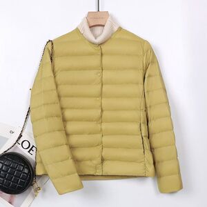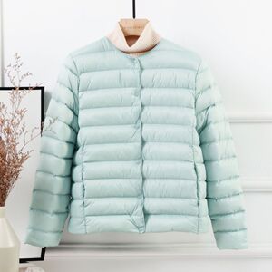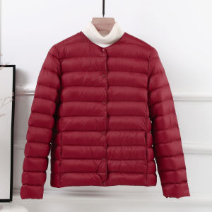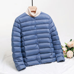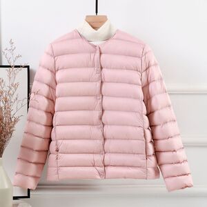 90白鸭绒轻薄羽绒服女短款圆领秋冬新款无领内胆纯色轻便大码外套
