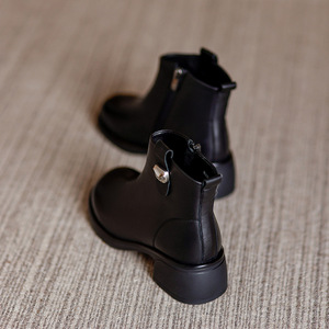 2025秋冬新款复古中粗跟真皮短靴女百搭舒适羊皮切尔西靴子