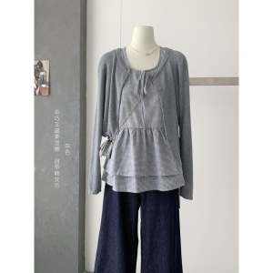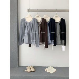 秋季韩女温柔针织短开衫+层次感系带格纹背心上衣两件套女秋套装