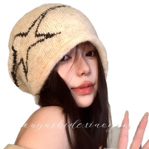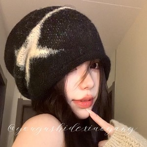 辣妹星星针织冷帽女秋冬韩系复古堆堆帽女护耳保暖百搭大头围包头