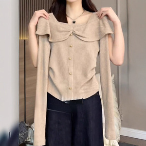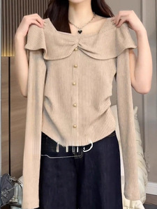 大码法式褶皱荷叶边长袖T恤女2025秋季新款胖mm收腰显瘦小众上衣