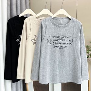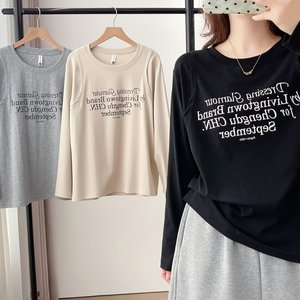 大码女装早秋新款胖MM基础款印花长袖T恤内搭200斤打底衫上衣8447