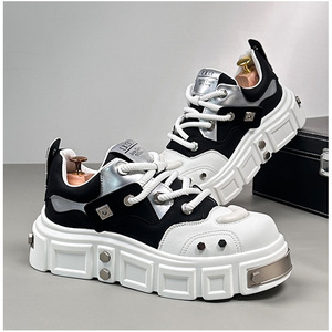 秋季新款高级感厚底老爹鞋欧洲站潮牌朋克柳钉男士隐形内增高男鞋