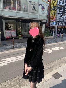 吃绿色菜黑金3.0复古丝绒金线刺绣秋季气质外套