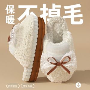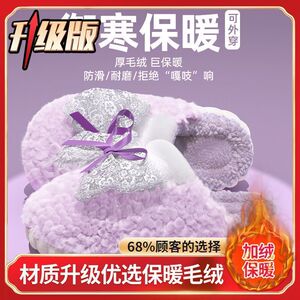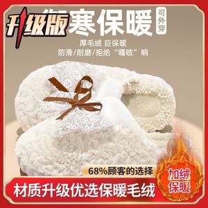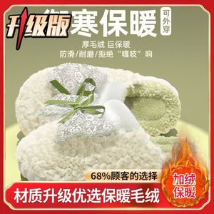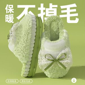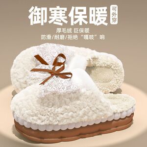 可爱蝴蝶结棉拖鞋女士秋冬季网红爆款厚底防滑踩屎感保暖毛绒拖鞋