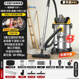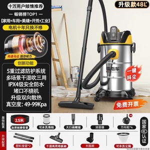 【军工级9800W+9900万PA强吸】48L加厚不锈钢桶可吸水+三过滤+尘袋+开荒+美缝+洗车