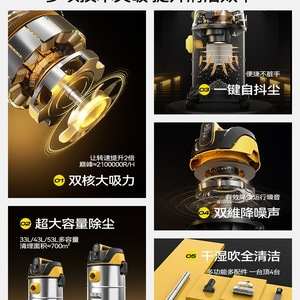【六核风冷电机9500W+9000万PA暴吸】38L加厚不锈钢桶可吸水+尘隔+开荒+美缝