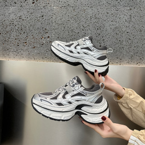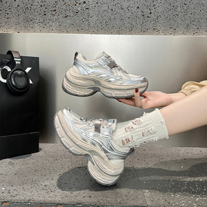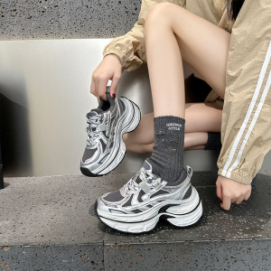 厚底内增高真皮老爹鞋女2025秋季新款复古百搭轻便软底休闲跑步鞋