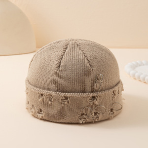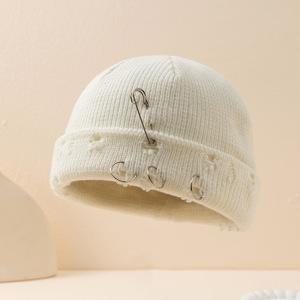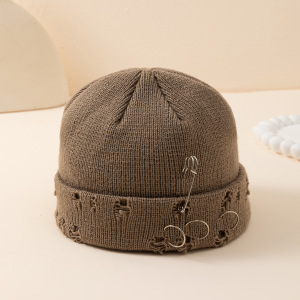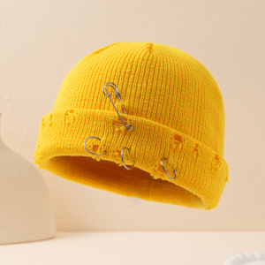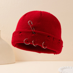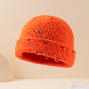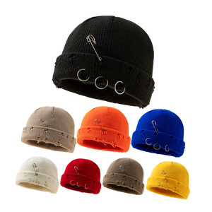 帽子女秋冬韩版ins圆环别针嘻哈情侣毛线破洞帽子男女同款 针织帽