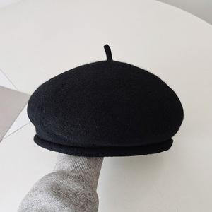 新款立体卷边贝雷帽子女款百搭秋冬潮流羊毛帽保暖毛绒画家帽批发