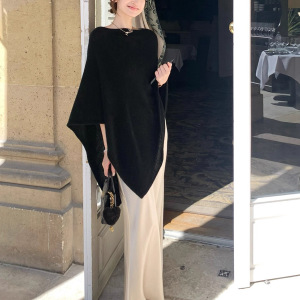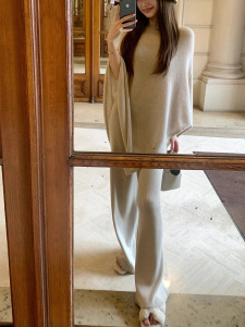 慢调巴黎静奢风老钱高智感感羊毛 不规则斗篷披肩上衣外套女裤子