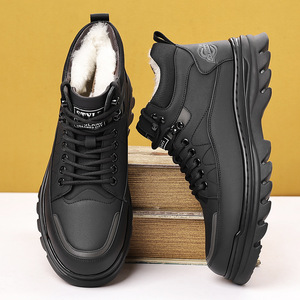 马丁鞋男2025冬季加绒加厚保暖高帮厚底黑色休闲潮流棉靴一件代发