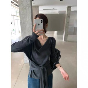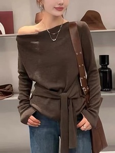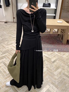 韩系设计感气质简约荡领系带针织上衣半身裙两件套女秋冬整套穿搭