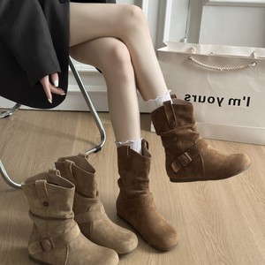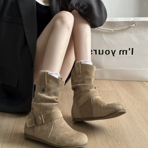复古内增高勃肯短靴子女2025秋季新款西部牛仔靴显瘦推推靴马丁靴