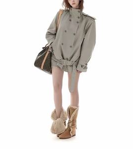 柔软廓型湖灰色宽松立领短款风衣外套女秋季新品