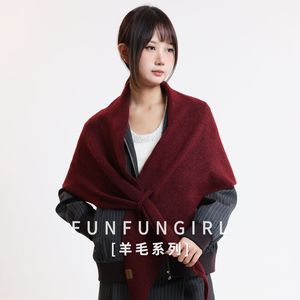 秋冬含羊毛三角披肩女柔软亲肤时尚百搭纯色围巾优雅气质慵懒配饰