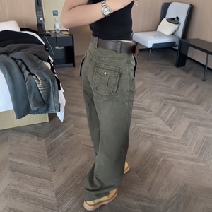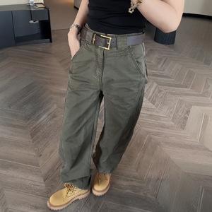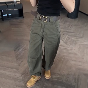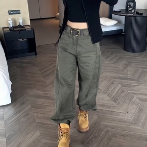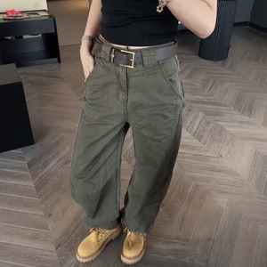 2025秋冬新款工装牛仔裤女梨型身材大码胖mm宽松显瘦直筒阔腿裤子