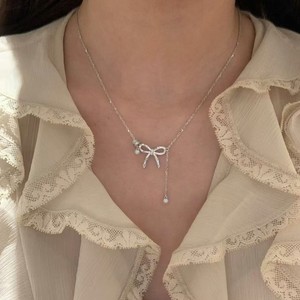 纯银S925在逃公主蝴蝶结项链轻奢复古千金感高颜值甜美百搭锁骨链