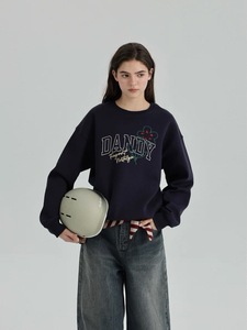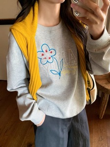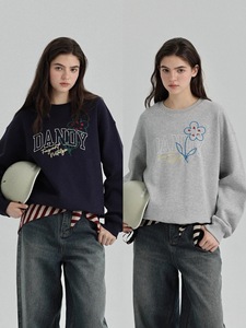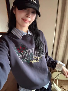 早秋时髦精必备! 韩系复古刺绣logo涂鸦装饰圆领宽松卫衣上衣女