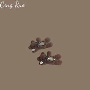 可可爱爱植绒小熊发夹饼干小熊闪钻边夹前额碎发侧边夹网红鸭嘴夹