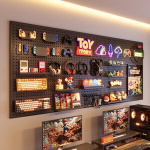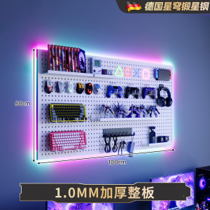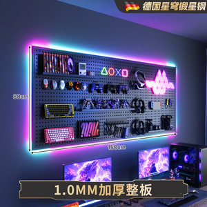 电竞房洞洞板黑色金属墙面上置物架房间装饰电脑桌面挂板展示