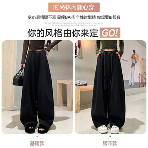 毛呢弯刀休闲裤女秋冬季2025新韩版高腰宽松阔脚裤休闲拖地长裤潮