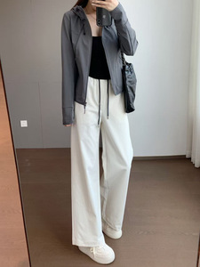松弛佰搭 钛金棉软糯抗皱微阔立体剪裁系绳松紧腰休闲裤秋G092006