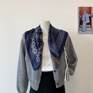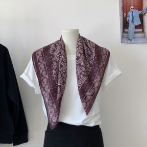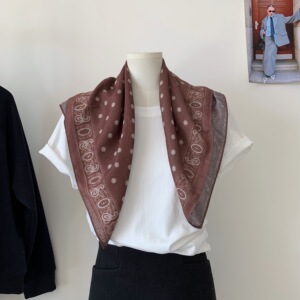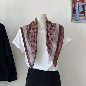 2025韩国原单双面印花ins 复古老钱风磨毛方巾叠穿百搭领巾腰封女