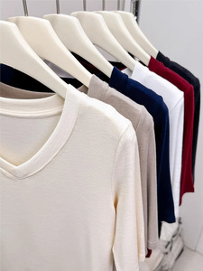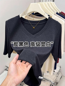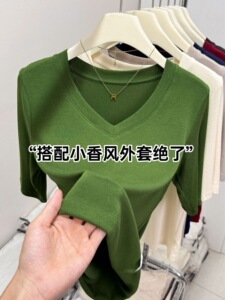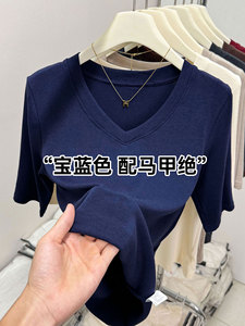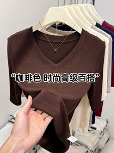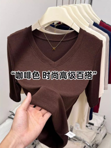 精品羊绒五分袖V领设计感上衣2025秋季欧货爆款百搭修身正肩内搭
