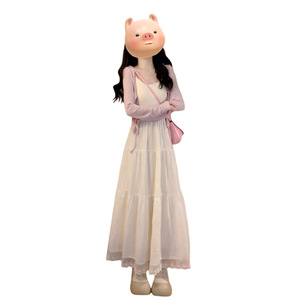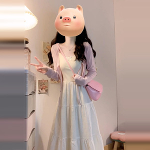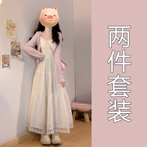 小个子韩系穿搭白色吊带连衣裙子女秋季2025新款法式气质套装长裙