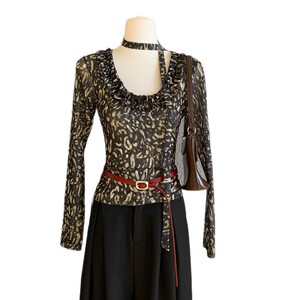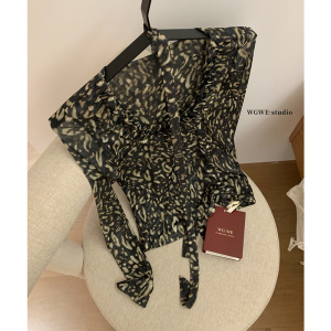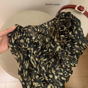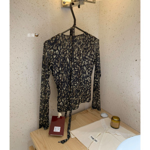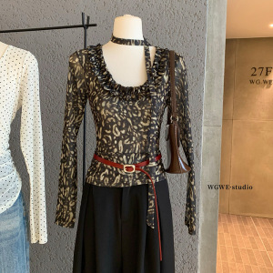 WGWE7414豹纹派对-自带chocker的时髦网纱打底修身显瘦上衣