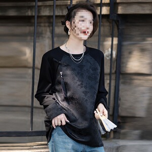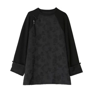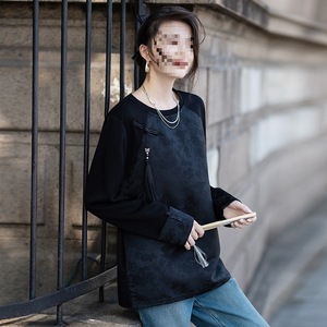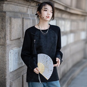 新中式女装上衣复古提花盘扣今年流行的国风t恤圆领长袖气质小衫