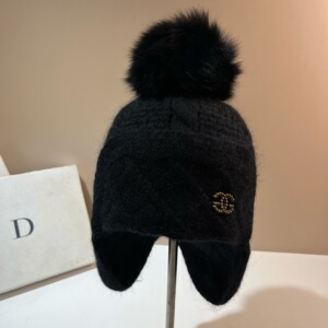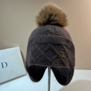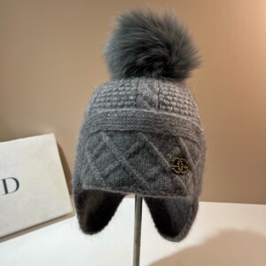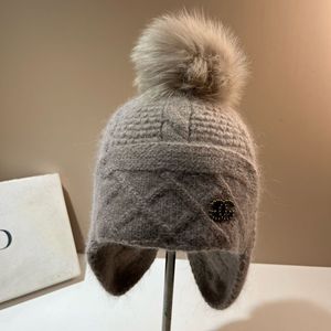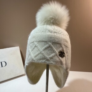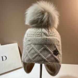 冬季小香风菱格针织狐狸毛球毛线帽韩版甜美保暖兔毛护耳雷锋帽女
