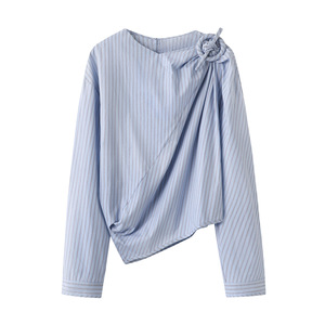 现货2025秋季新款简约显瘦立裁结构斜肩长袖衬衫上衣2J3C402