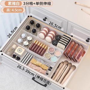 抽屉收纳盒【白色3分格+四面伸缩】1个装