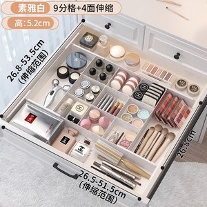 抽屉收纳盒可伸缩内置分隔板化妆口红整理盒桌面梳妆台透明储物盒